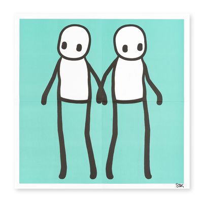 In September 2020, Stik collaborated with Hackney Council to release his "Holding Hands" artwork in the Hackney Today newspaper, delivering prints to every household in the area as a gift. The print features two stick figures holding hands but looking in opposite directions, symbolizing both connection and separation. This piece, available in multiple colors, aims to convey a message of universal love and solidarity during a time when physical contact was limited. The artwork encourages viewers to empathize with others' perspectives and find common ground.